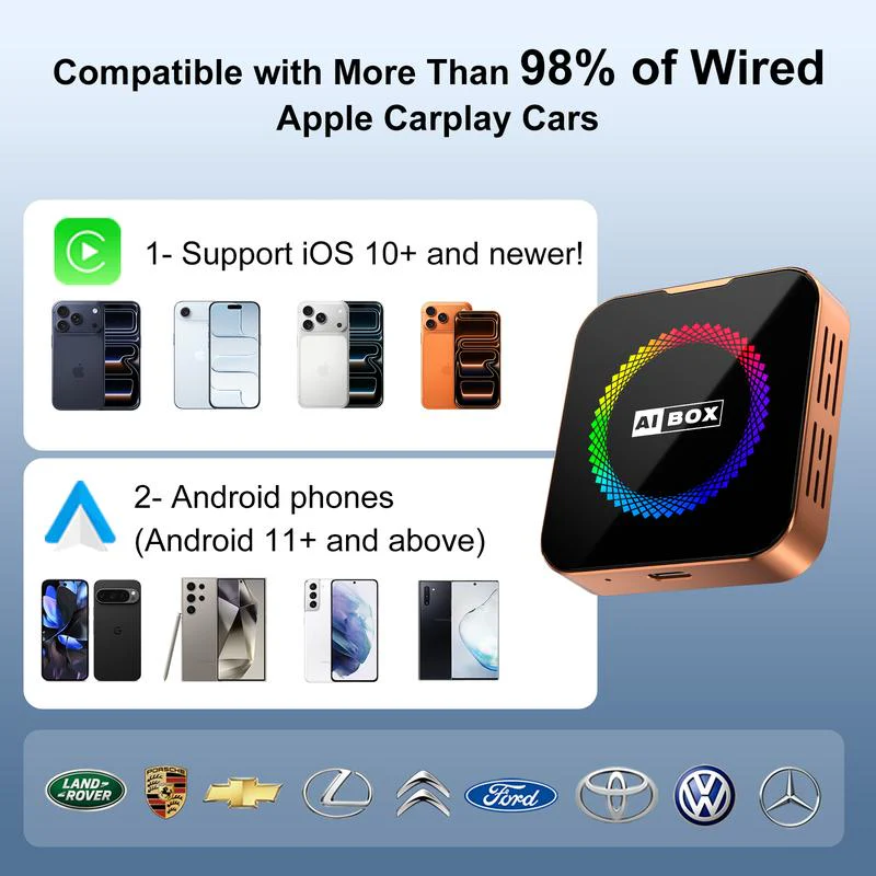 • ❌ Niet compatibel met voertuigen die al ingebouwde draadloze CarPlay hebben